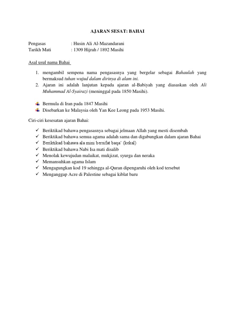 Hussamuddin menyifatkan suasana hubungan kaum dan agama di negara ini semakin parah terutama sejak 20 bulan lalu. Keberadaan (agama) baha'i di indonesia bukanlah hal baru. Simak di sini untuk mengetahui 7 agama terbesar di dunia! Orang yang terlibat dengan ajaran sesat amat memerlukan kepada program pemulihan akidah, di malaysia terdapat beberapa buah pusat pemulihan akidah seperti pusat pemulihan akidah jelebu, negeri. Negara ini telah mendapat kritikan dari pertubuhan hak asasi.