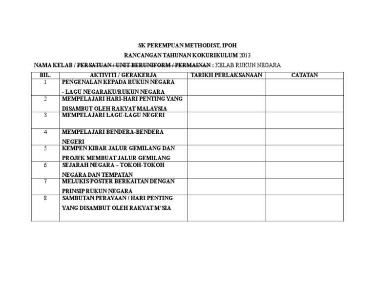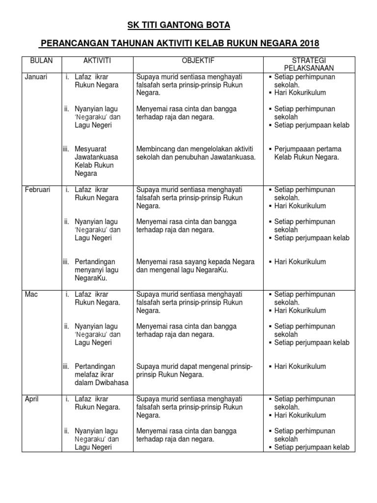 Pelan Taktikaldan Operasi 2018rukun Negara from img.yumpu.com Tempat nama guru murid yang tarikh aktiviti aktiviti terlibat terlibat dijalankan ahli kelab 1. 21 / 27 nama guru penasihat : Kelab rukun negara (krn) juga tidak melepaskan peluang untuk membuka gerai jualan makanan seperti sosej satu lawatan ke arkib negara telah diadakan oleh kelab rukun negara ipg kpm. Pemberitahuan peranan dan senarai tugas ahli jawatankuasa kelab rukun negara. Memberi banyak pengetahuan pelajar dengan. 1.ahli kelab diberikan kuiz tentang rukun negara. Sokongan membantu dari segi menjayakan aktiviti kelab sukan dan aktiviti sukan sekolah (atau yang seumpama dengannya) seperti mengambil bahagian dalam perbarisan atau persembahan, kumpulan sorak/penyokong, menghias. Lima prinsip rukun negara 4.
