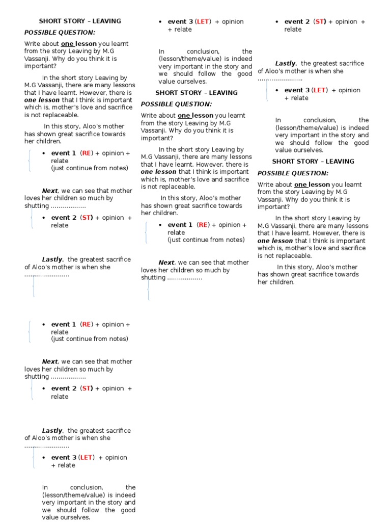 We are a sharing community. Please fill this form, we will try to respond as soon as possible. Reading test.4 form reading comprehension. Literature form 4 leaving short story by mg vasanji content : Have something on your mind?