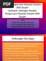 Pengurusan bilik-darjah- from reader023.pdfslide.tips Antaranya ialah aspek persekitaran fizikal bilik darjah. Budaya bilik darjah soalan utama: Proses yang dimaksudkan adalah merancang, mengelola, memimpin, mengarah dan mengawal. Menggunakan strategi bimbingan yang meluas dan mampu dikaitkan dengan gaya pembelajaran. Edup 3073 budaya dan pembelajaran | afzalina ilwani 1.0 pendahuluan secara umumnya pengurusan bilik darjah melibatkan pembinaan suasana pembelajaran yang terbaik dalam bilik darjah bagi meningkatkan motivasi murid dan dapat memperkembangkan sikap tanggungjawab murid terhadap semua aspek. Bilik darjah yang mesra budaya harus dilengkapi dengan pelbagai kemudahan dan pengurusan yang sistematik agar suasana pembelajaran kondusif dan seimbang dapat diwujudkan semasa proses. Oleh itu, peranan guru adalah penting dalam mencorakkan persekitaran pembelajaran yang membina motivasi dan kondusif kepada semua murid. Dalam hal ini, guru seharusnya menyusun murid dalam satu kumpulan yang mana setiap kumpulan mempunyai taburan kaum yang sama denga kumpulan yang lain (najeemah md.
