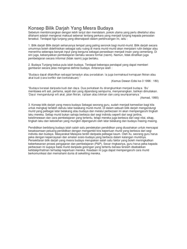 Bab 1 Konsep Asas Pentaksiran Bilik Darjah from imgv2-1-f.scribdassets.com Tujuan pengurusan pelbagai budaya adalah untuk mewujudkan suasana harmoni dan sejahtera antara murid pelbagai budaya. Proses yang dimaksudkan adalah merancang, mengelola, memimpin, mengarah dan mengawal. Pembinaan persekitaran bilik darjah yang mesra budaya. Pengurusan bilik darjah juga akan semakin baik apabila sistem penyeliaan diurus dengan berkesan. Bilik darjah yang mesra budaya harus dilengkapi dengan pelbagai kemudahan dan pengurusan yang sistematik agar suasana pembelajaran kondusif dan seimbang dapat diwujudkan semasa proses. Pembinaan persekitaran bilik darjah yang mesra budaya pengenalan pengurusan kelas yang mesra budaya penting supaya suasana pembelajaran menjadi kondusif untuk murid. Penggunaan alat bantu mengajar yang sesuai dan berkesan sangat penting untuk membantu guru menerangkan konsep abstrak yang sukar kepada para pelajar. Pembinaan persekitaran bilik darjah yang mesra budaya.